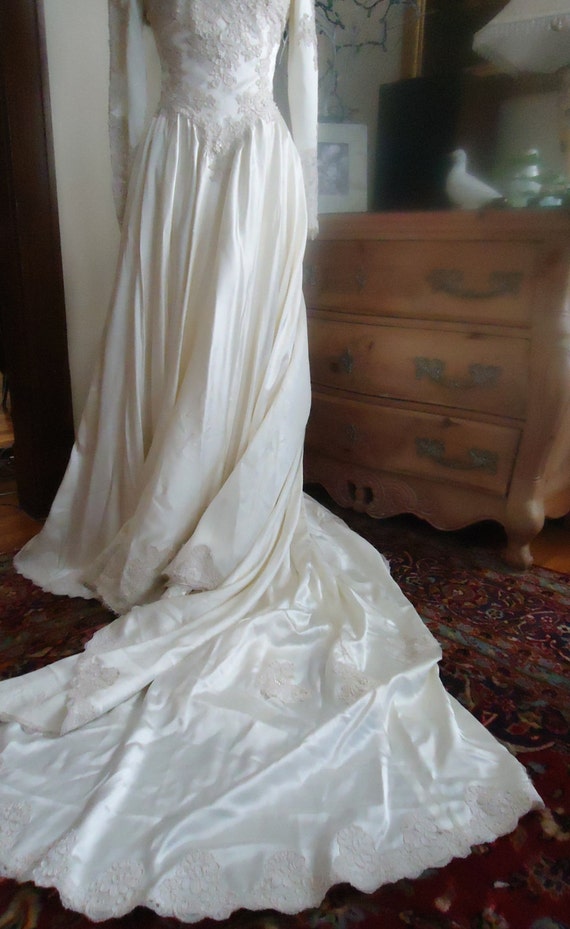 Vintage Wedding Gown Ivory Lace Bridal Gown Basque Waist Grandma Wedding Dress Dress With Train Retro Bride Modest Wedding Dress