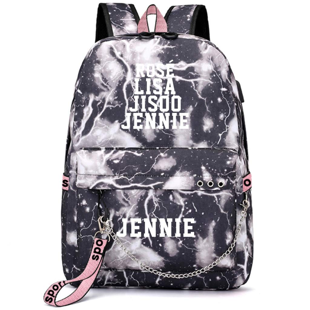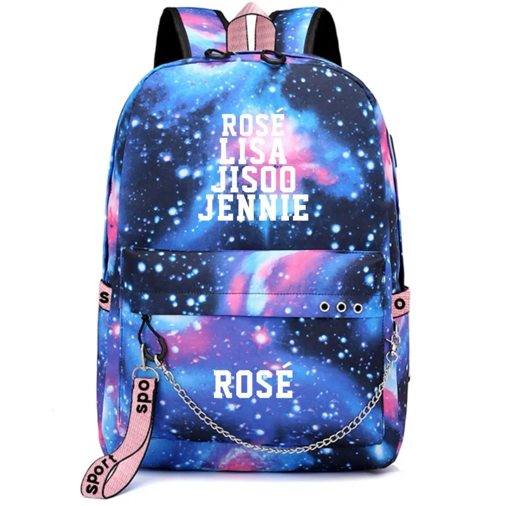 Kpop Blackpink Backpack Rose Lisa Jennie School Bag Chain Usb