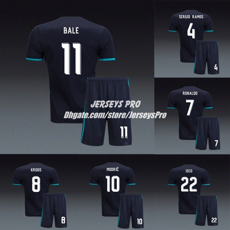 Cristiano Ronaldo Madrid Uniforms 2017 2018 Away Black Soccer Jerseys Kits Sergio Ramos Gareth Bale Karim Benzema Isco Luca Modric Marcelo