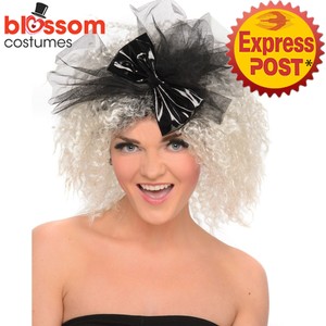 W489 Madonna Pop Mega Star 80s Costume Blonde Curly Wig Bow