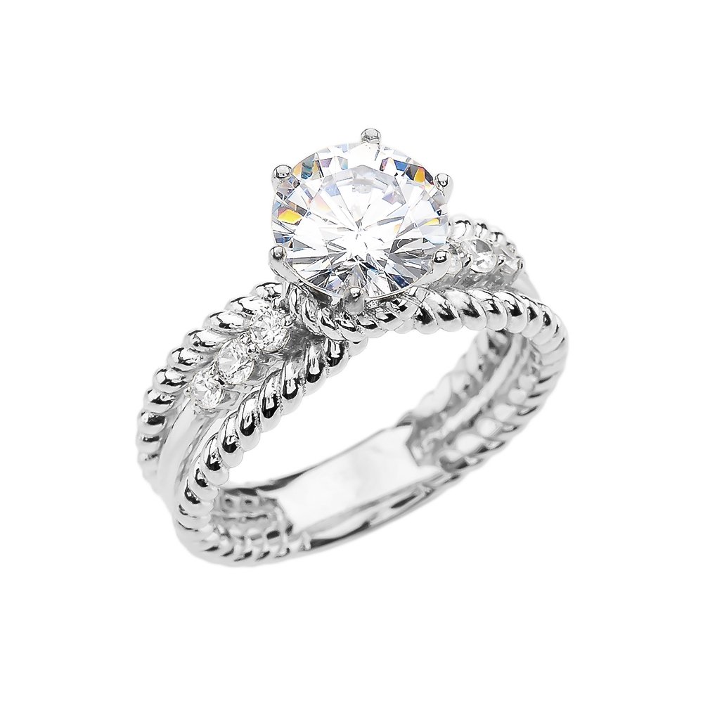 10k White Gold Dainty Diamond Modern Solitaire Rope Design