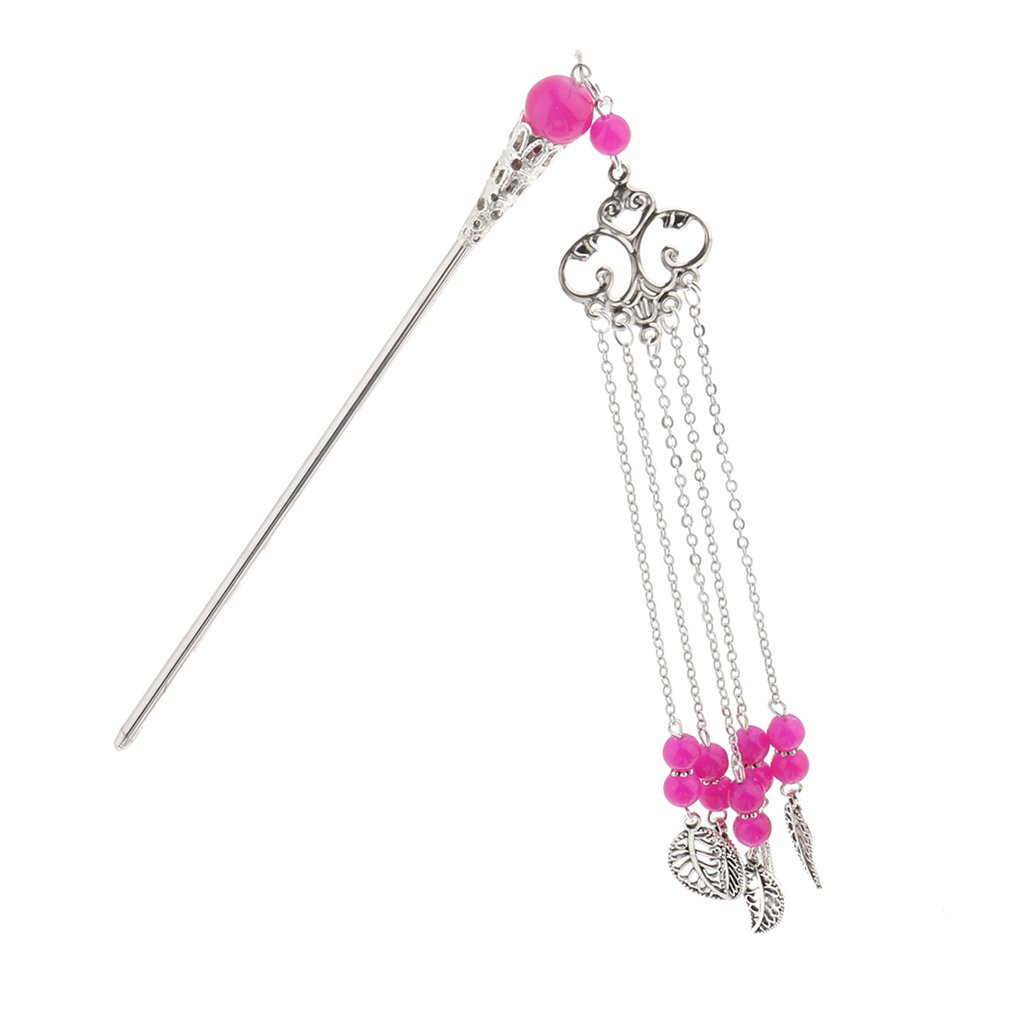 Baoblaze Traditional Chinese Court Play Drama Beads Tassel Chain Cosplay Costume Hair Stick Pick Jewelry Rose Red 14cm